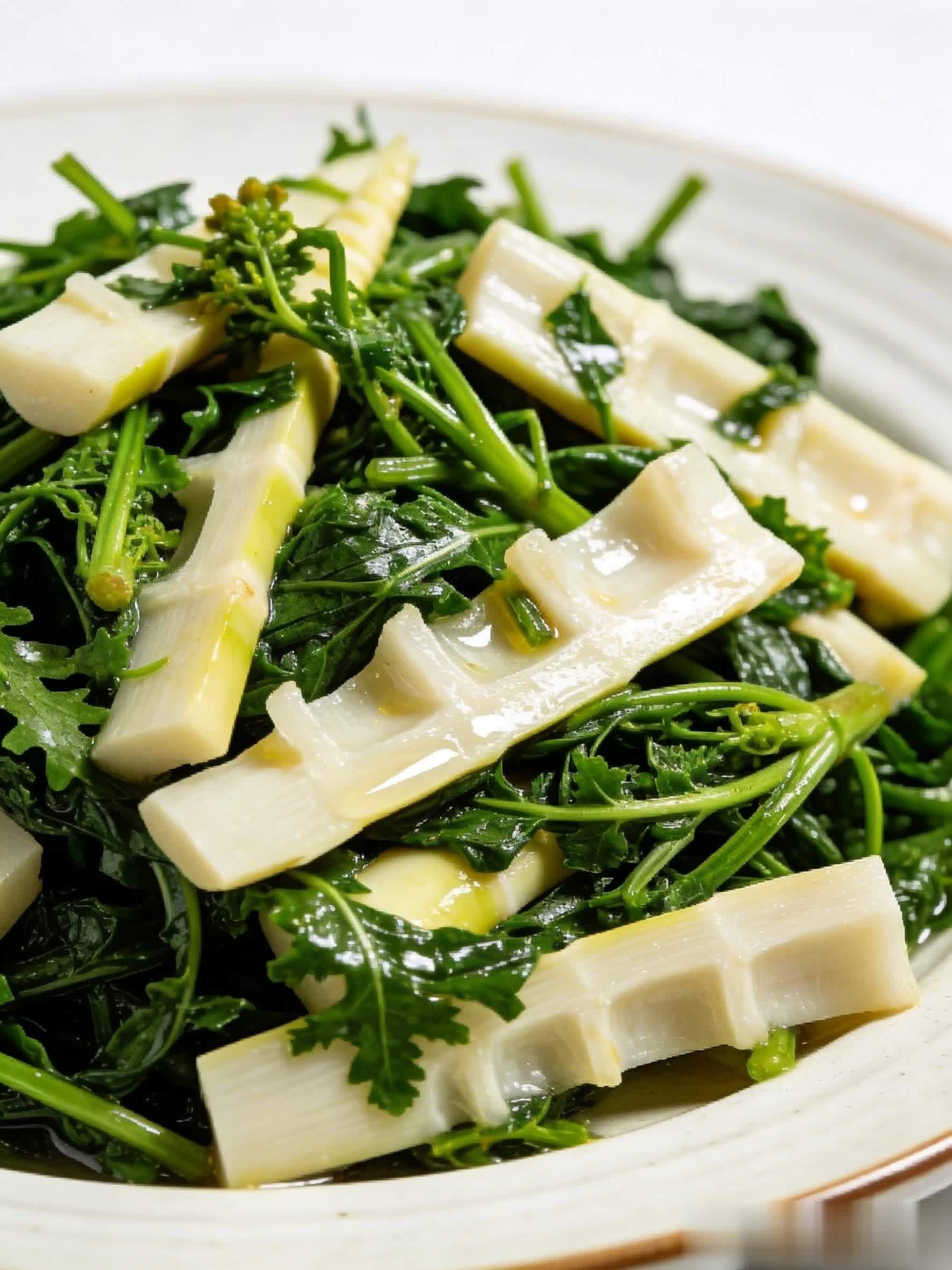 鲜嫩荠菜1把,春笋1根,盐、食用油少许